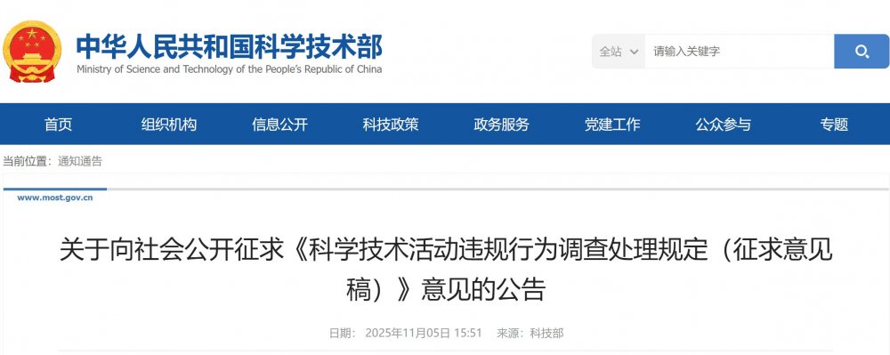 近日,科技部修订发布了《科学技术活动违规行为调查处理规定(征求意见稿)》,对科学技术活动受托管理机构、实施单位、科学技术人员、咨询评审专家、第三方科学技术服务机构的违规行为及处理措施进行重新定义。